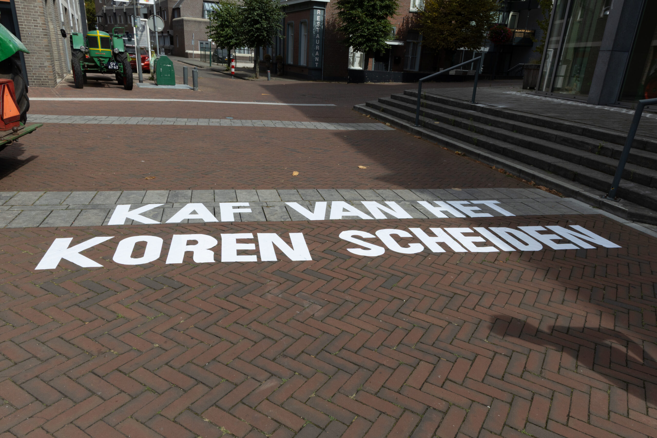 Terwijl het Dorsteam de historische dorsmachine in werking stelde, schreef Van Lieshout met schelpenzand een selectie gedichten van de Ysselsteynse dichter Wim Lemmens op straat. De teksten draaiden om het thema van de krimpende en zoekende boer, en vormden een poëtische reflectie op de huidige staat van de agrarische sector.